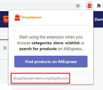 Step 1, Go to your Store > Apps > DropShipMan, click on the extension in the upper right corner of Chrome. (If it does not exist, it may be in the dropdown menu of the puzzle.) Make sure that you have logged in to Dropshipman Shopify app before using the extensions.